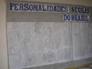 Ao trabalhar com o tema “Semana da Consciência Negra”, fizemos um projeto onde fizemos pesquisas de personalidades negras no Brasil e no Mundo. O trabalho foi feito unindo tecnologia e produção textual. Em mãos com a pesquisa de biografias de personalidades negras retiradas da Internet, os alunos elaboraram fichas resumidas das mesmas onde continham dados principais e destaques. Com o programa Dumpr.net foi feita uma transformação nas fotos das pessoas pesquisadas e montamos um mural com as fichas a disposição para as pessoas lerem caso tivessem interesse e curiosidade.